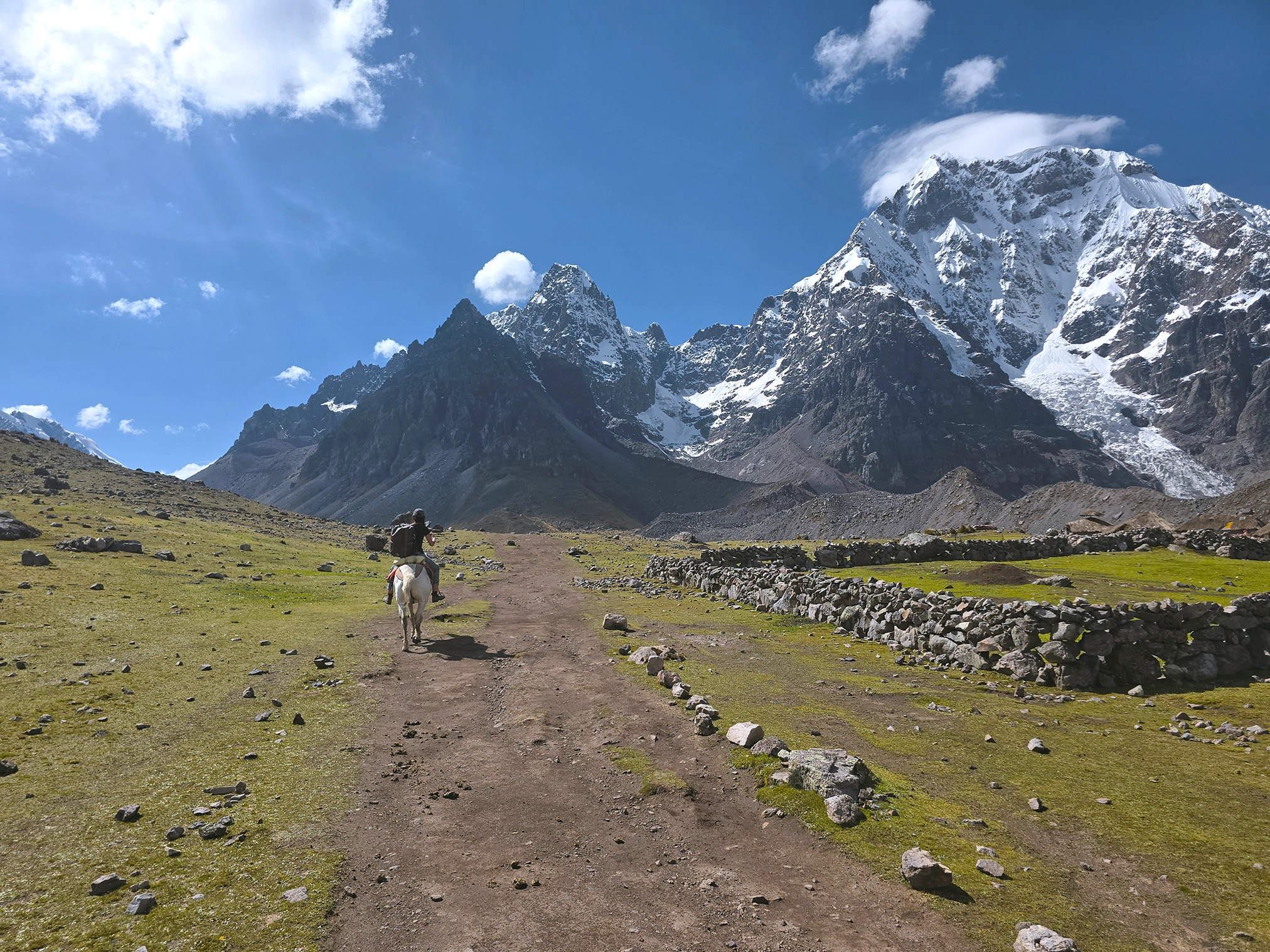 The journey begins in the remote Andean community of Pacchanta, a traditional village known for its strong cultural roots and its famous natural hot springs. From here, you will follow peaceful, off-the-beaten-path trails that are rarely visited by hikers, offering a serene and immersive experience far from the crowds commonly found on the classic Ausangate 7 Lakes hike. Riding at a relaxed and steady pace allows you to fully appreciate the vast landscapes, take photos, and connect with nature.